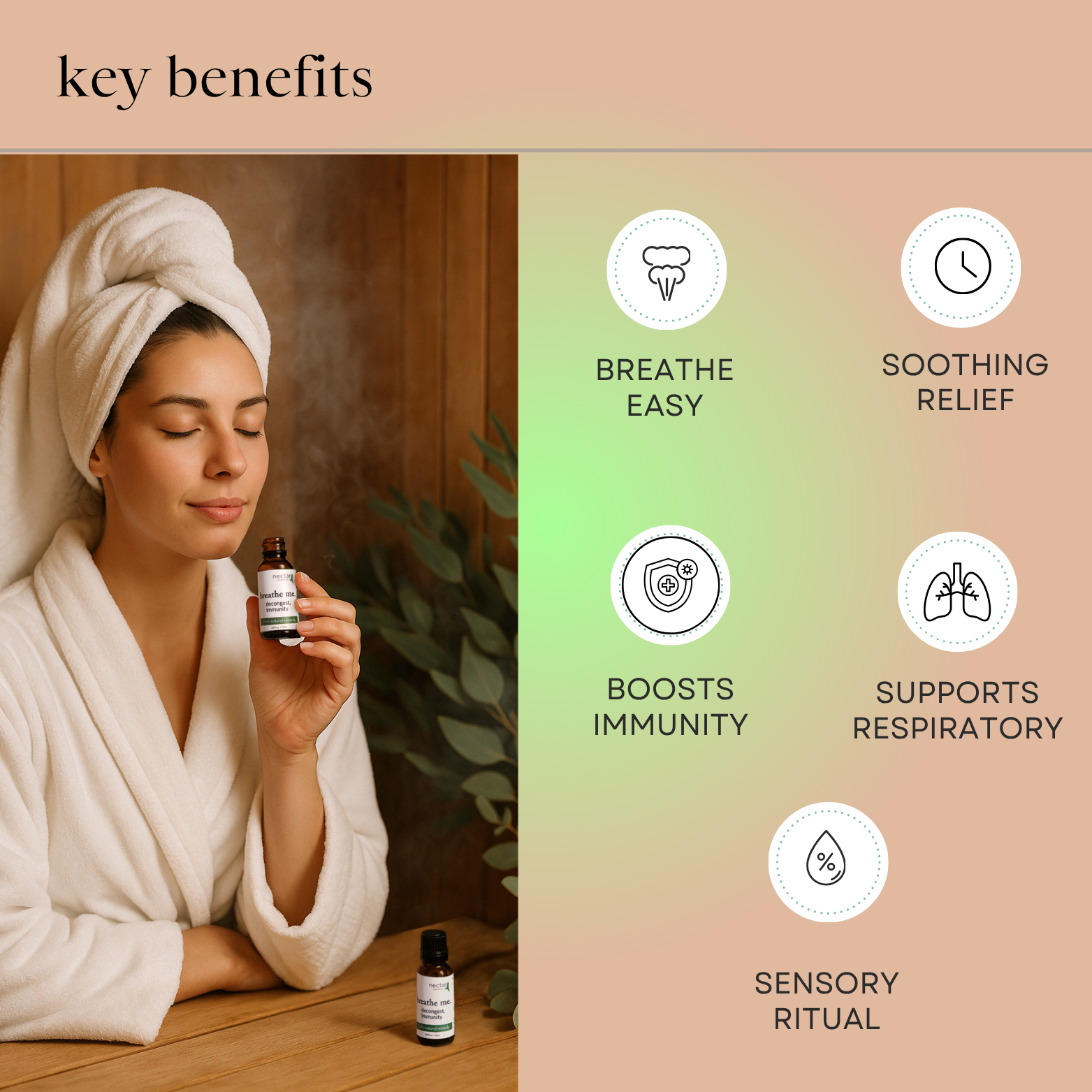 Breath: Place two drops in palms. Rub hands together. Cup hands over nose and mouth. Inhale deeply. Repeat for 30 seconds.