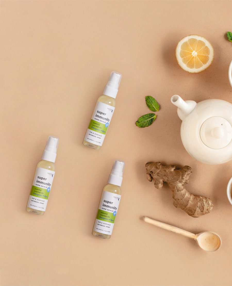 this surface and air mist is like holy armor. it’s made with anti-microbial essential oils of lemongrass, coriander, clove, mandarin, thyme and oregano oils and highlights flower essences for maintaining healthy energetic boundaries. full-time traveler? big family? lots of grubby little hands? decrease the germs entering your nose and throat by clearing the air with plant botanicals! consistency is key with viral protection, so keep a bottle in your purse, your car, at the door, in the diaper bag.